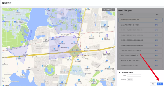 3、输入名称、选择形状,并可在地图中拖动服务区形状改变区域